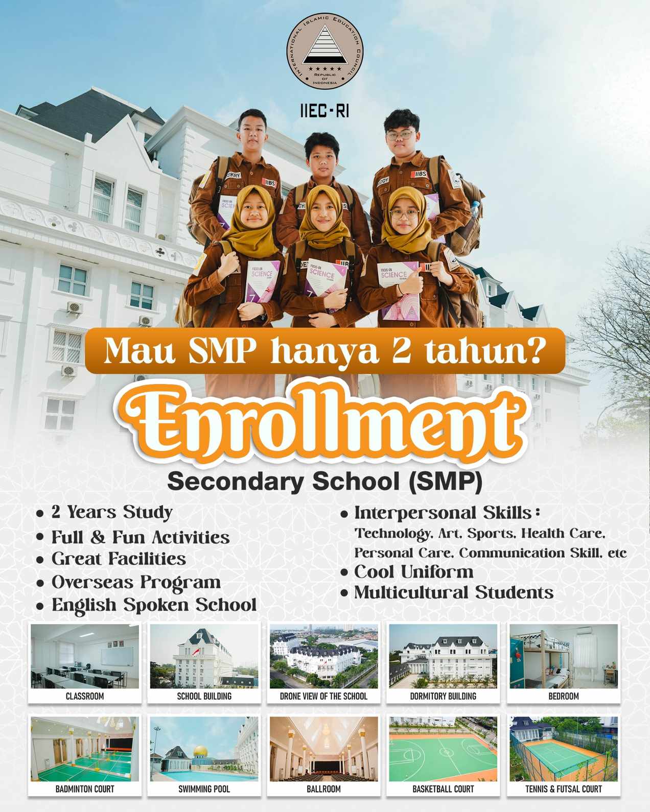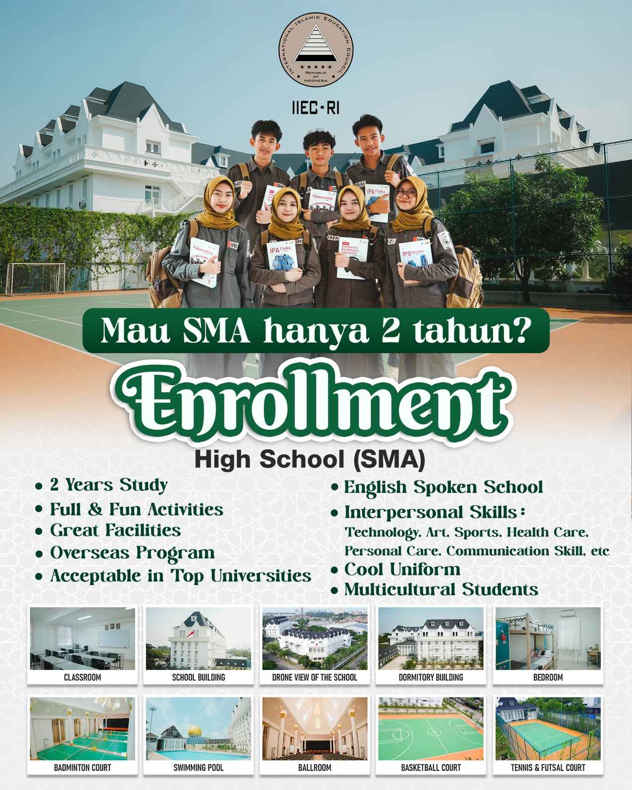 IIEC-RI hadir sebagai sekolah yang berkomitmen membentuk generasi yang mampu berkontribusi pada perubahan dunia di masa depan. Kami tidak menerapkan formula khusus dalam penerimaan peserta didik. Setiap pendaftaran ditinjau secara menyeluruh (baik dari aspek akademik maupun karakter pribadi) untuk memastikan setiap siswa dapat berkembang dan berkontribusi dalam komunitas belajar yang beragam dan inklusif.